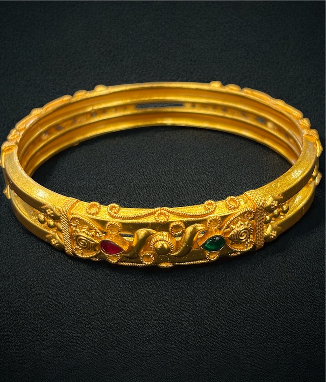 This bangle draws inspiration from the timeless Coorgi bangle .