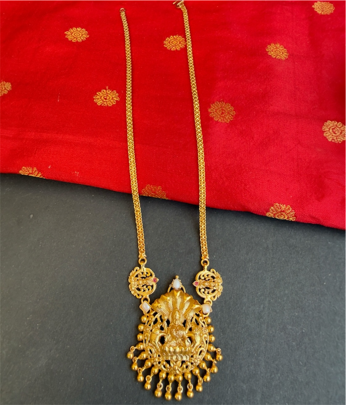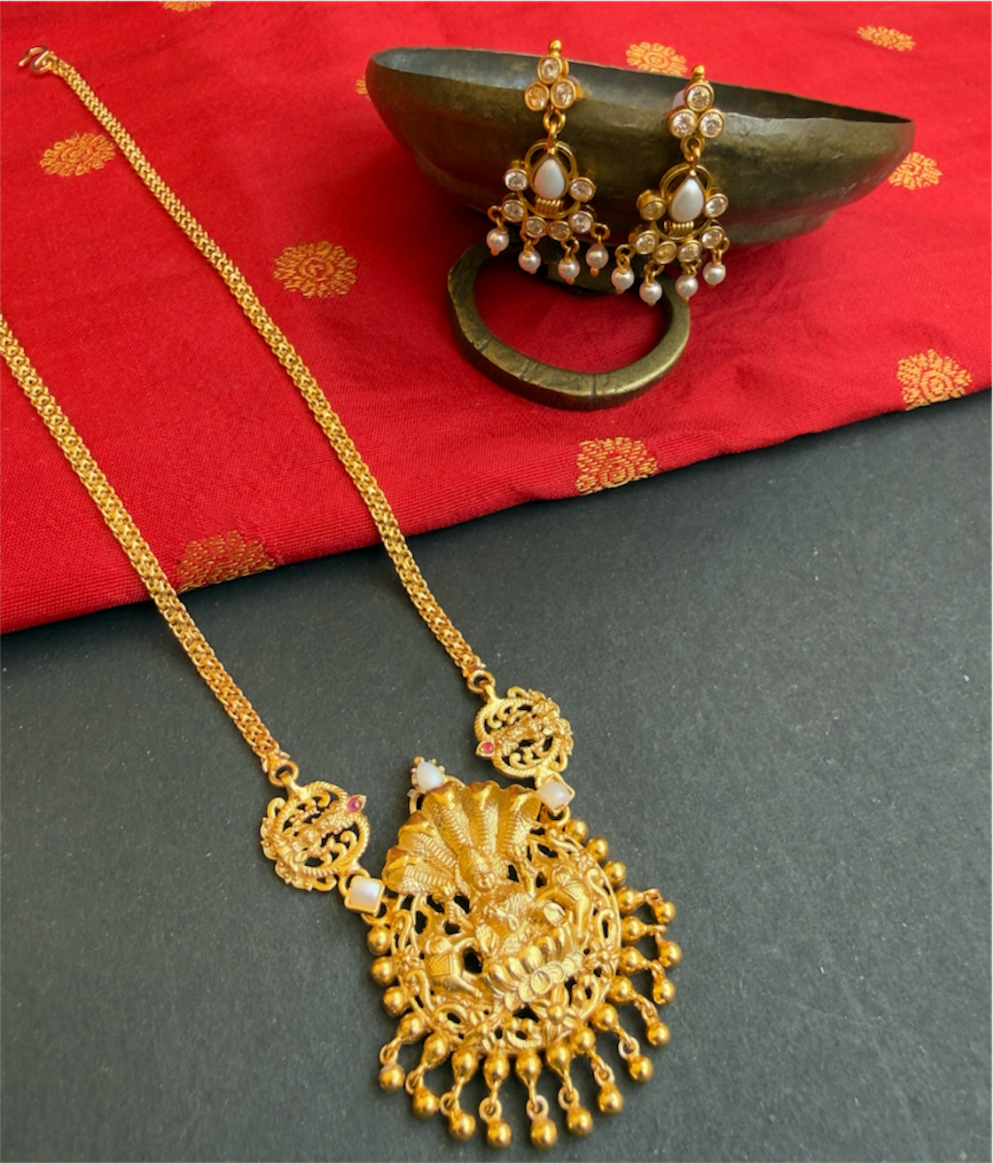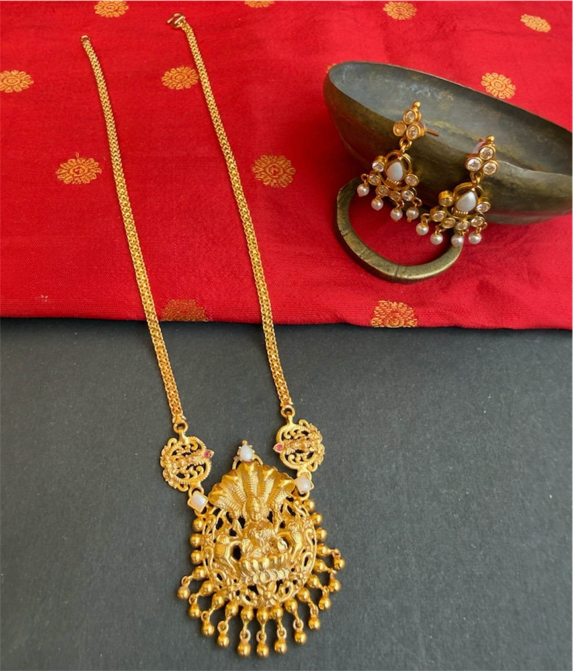 Gemstones used: Natural pearl, kempu stone (also known as spinel or Zircon).