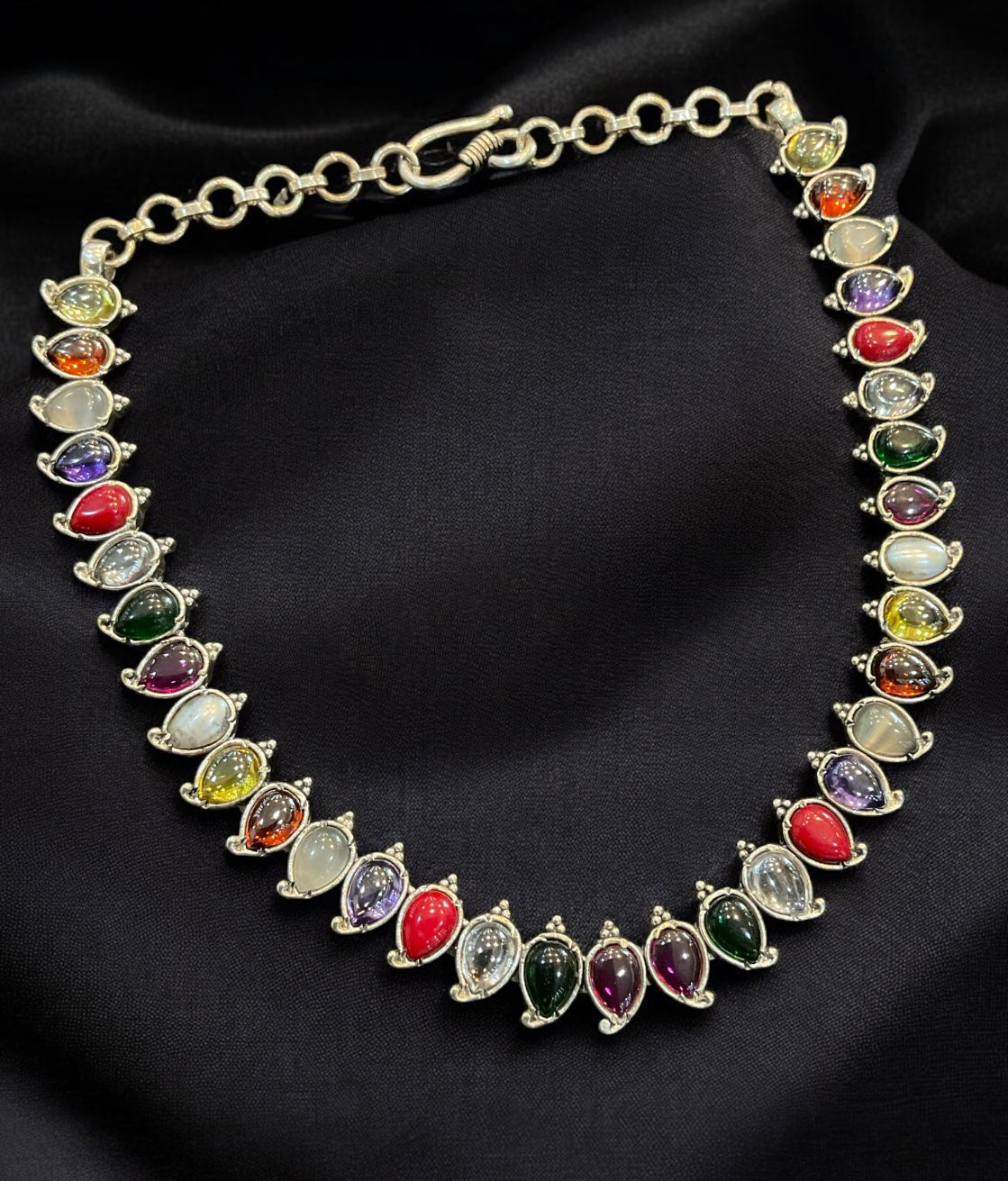 The Aru Silver Navratna Necklace (Oxidised)