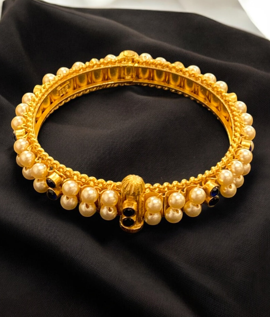 The Prisha Silver Pearl Bracelet Muttina Bale -Single ( Blue /Size /2.2/2.4/2.6/2.8)