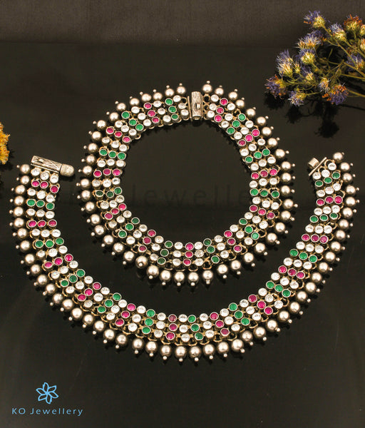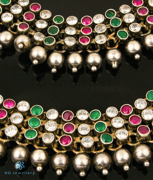 The Pushpita Kokkethathi Silver Kodava Green kemp Necklace & Earrings