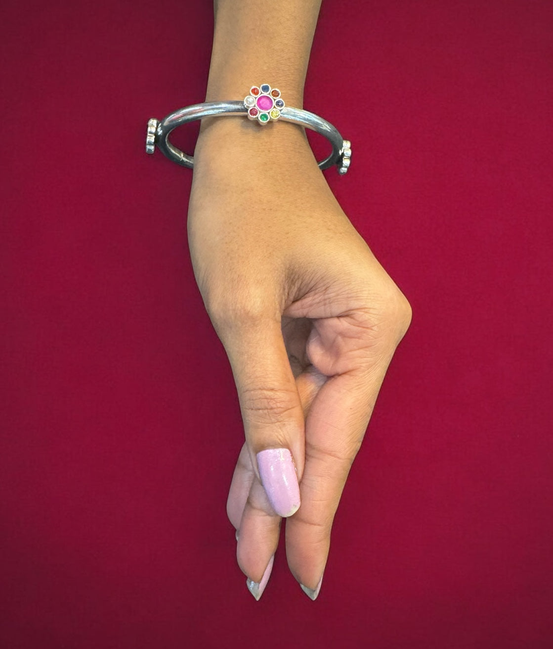 Introducing another stunning bangle design in 925 Pure Silver, this is a KO Original designed in house and meticulously handcrafted at our workshop. Each piece undergoes at least 5-6 distinct processes, with a skilled artisan dedicated to each stage, ensuring unparalleled quality and precision.