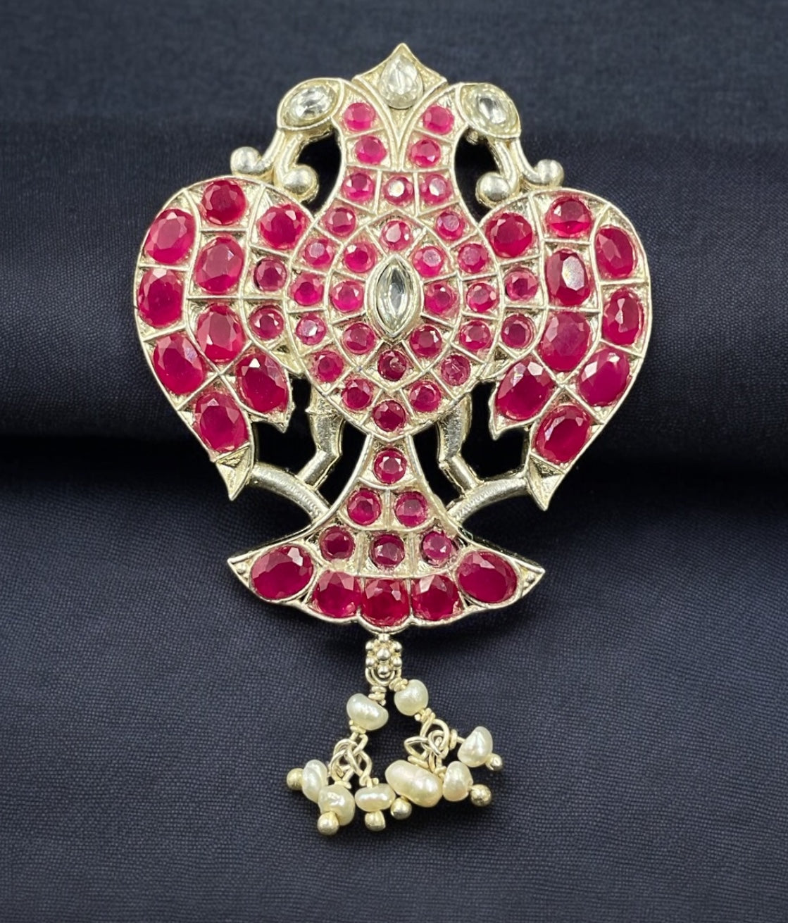 Gemstones used: kempu stone (also known as spinel or Zircon), natural Pearl.