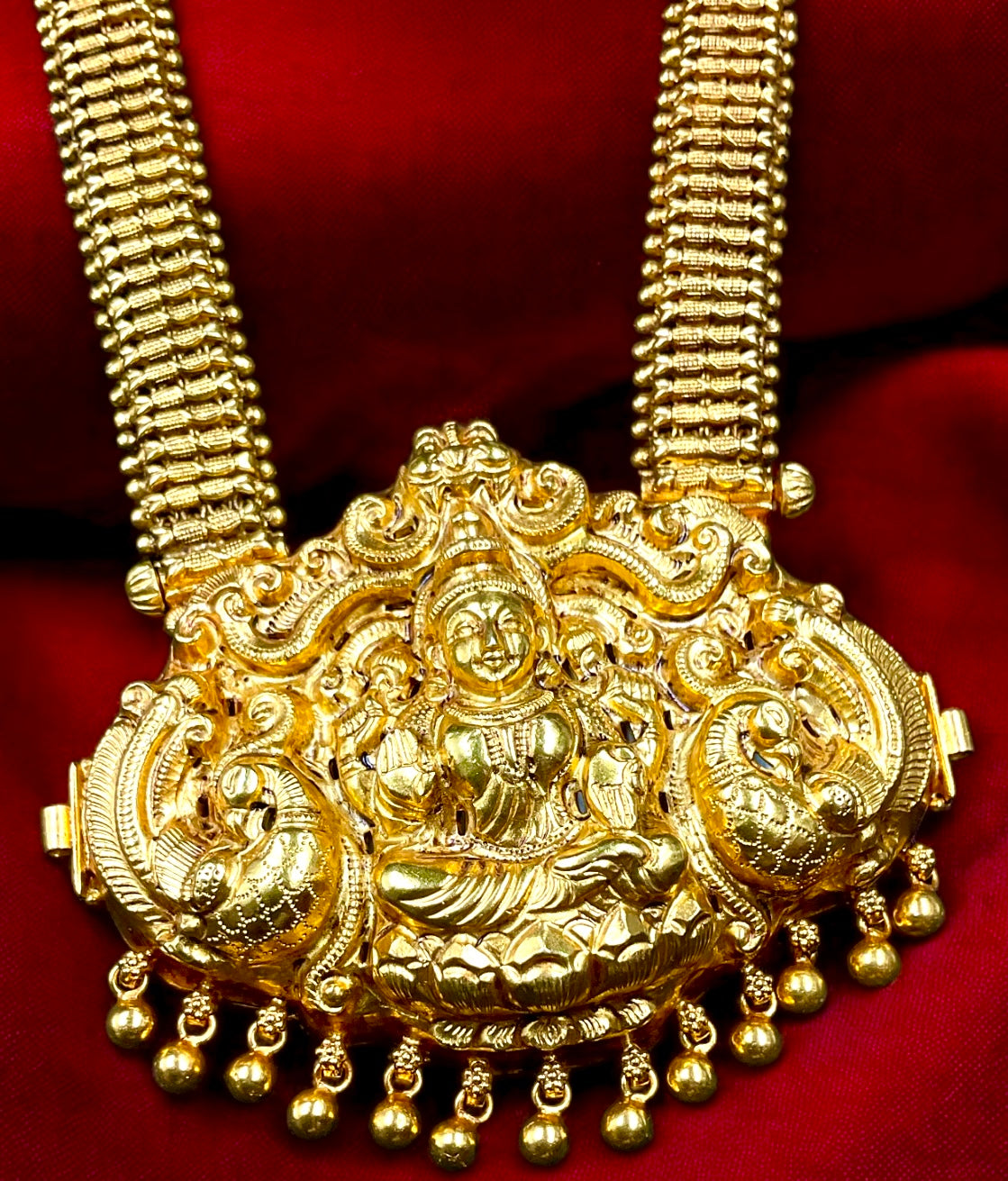 Goddess Lakshmi Long Nakkasi Necklace – Handcrafted Temple Jewellery