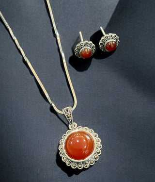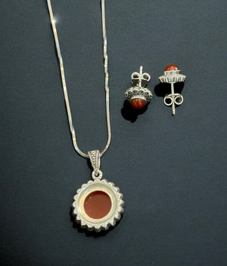 The Vajra Shankhu, Chakra Nama Silver Pearl Necklace & Earrings (Oxidised)