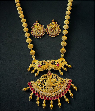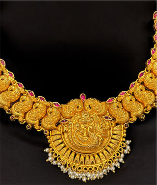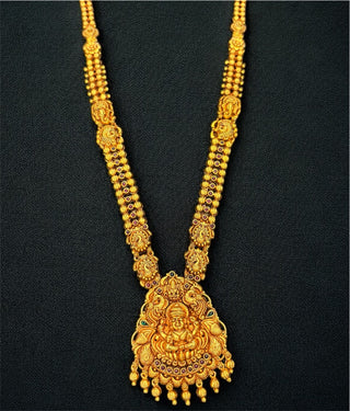 Silver and gold plated necklace sets with paired ear rings, haaras, kasu malas, dolki bead necklaces, manga-malai. Explore many more beautiful jewellery options.