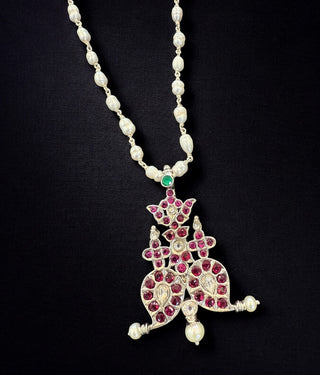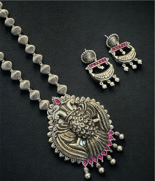 The Nilakantha Silver Peacock Long Nakshi Haaram/Necklace