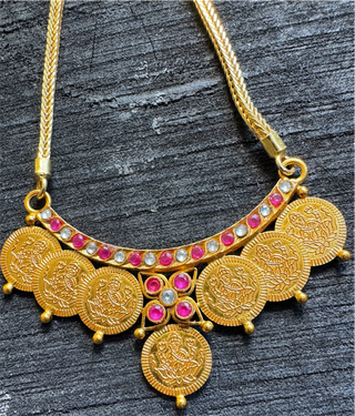 The Mudra Silver Lakshmi  Kasumala Necklace & Earrings