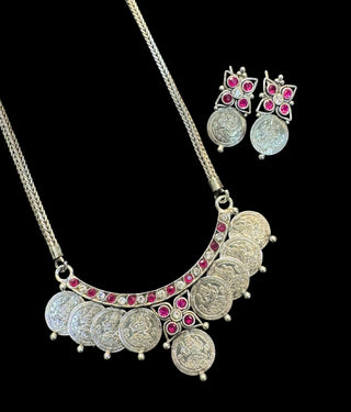 The Mudra Silver Lakshmi  Kasumala Necklace & Earrings (Oxidised)