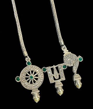 The Vajra Shankhu, Chakra Nama Silver Necklace & Earrings (Oxidised)