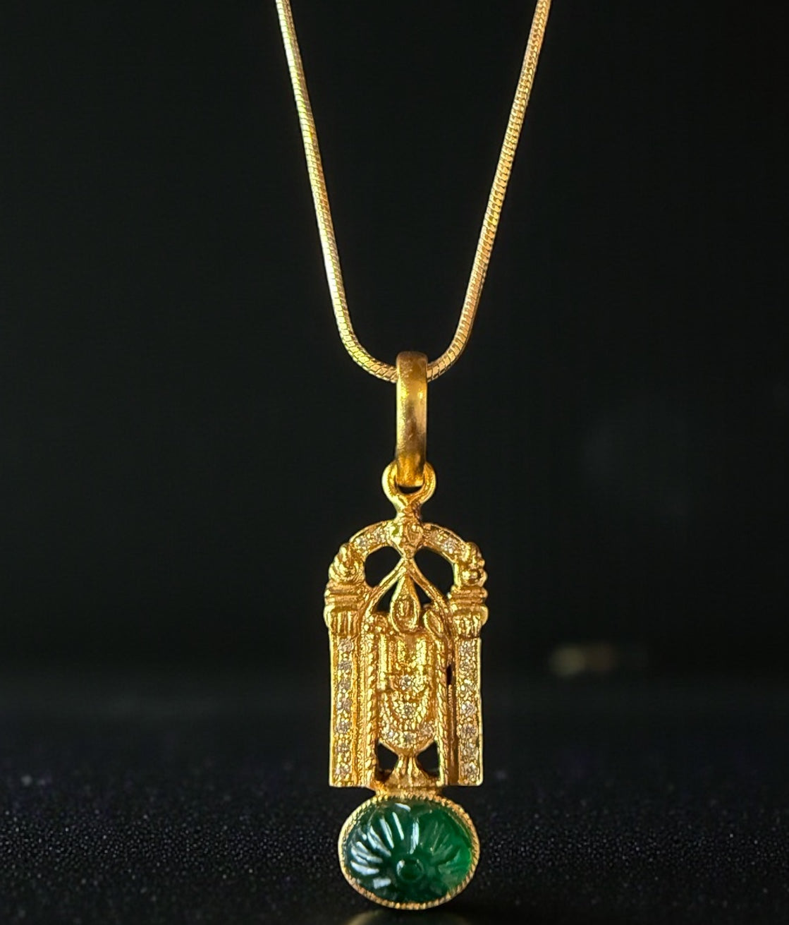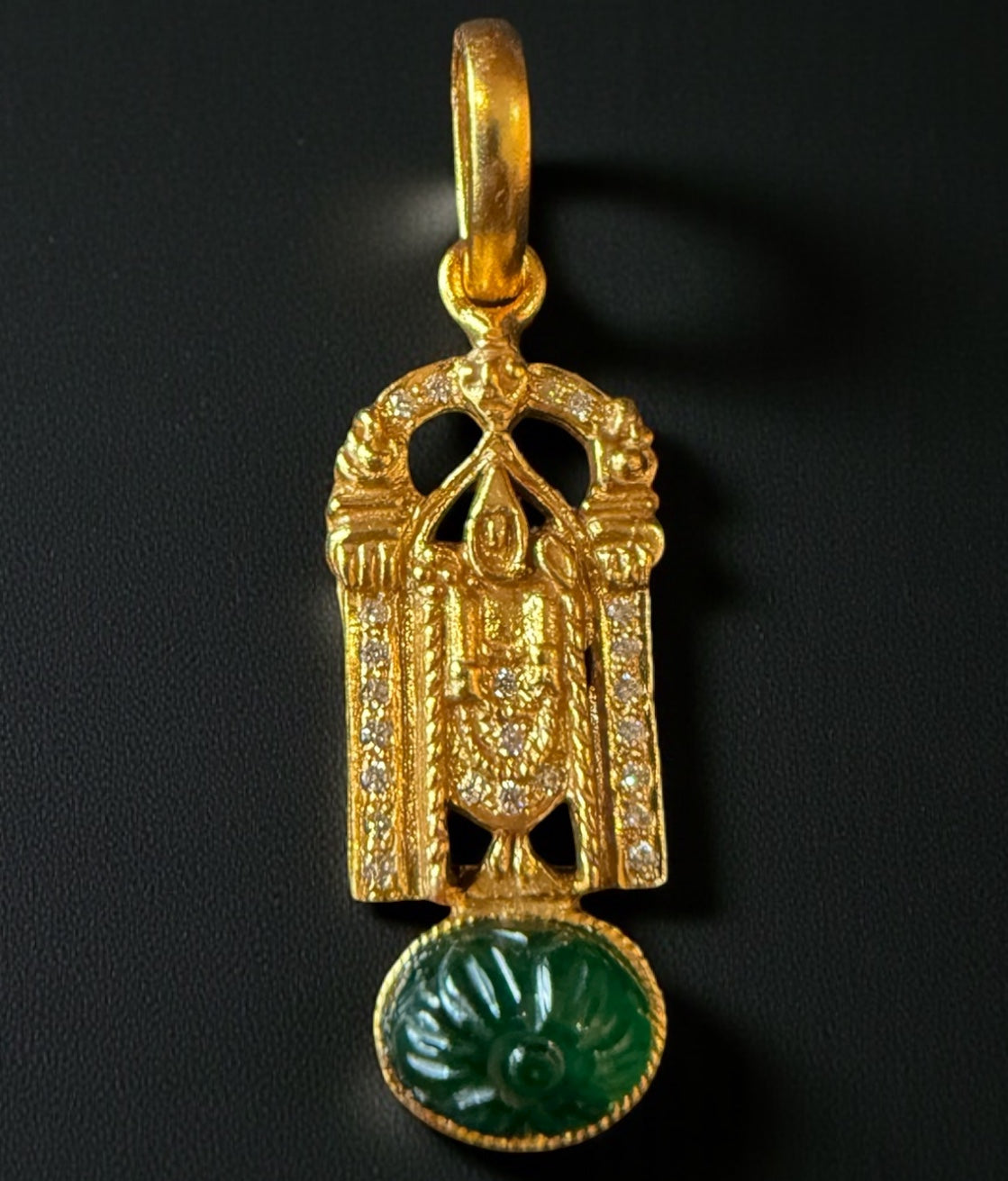 The Madhava Silver Venkateshwara Green Kemp Pendant-Buy Gold Plated Balaji pendant Online - KO Jewellery