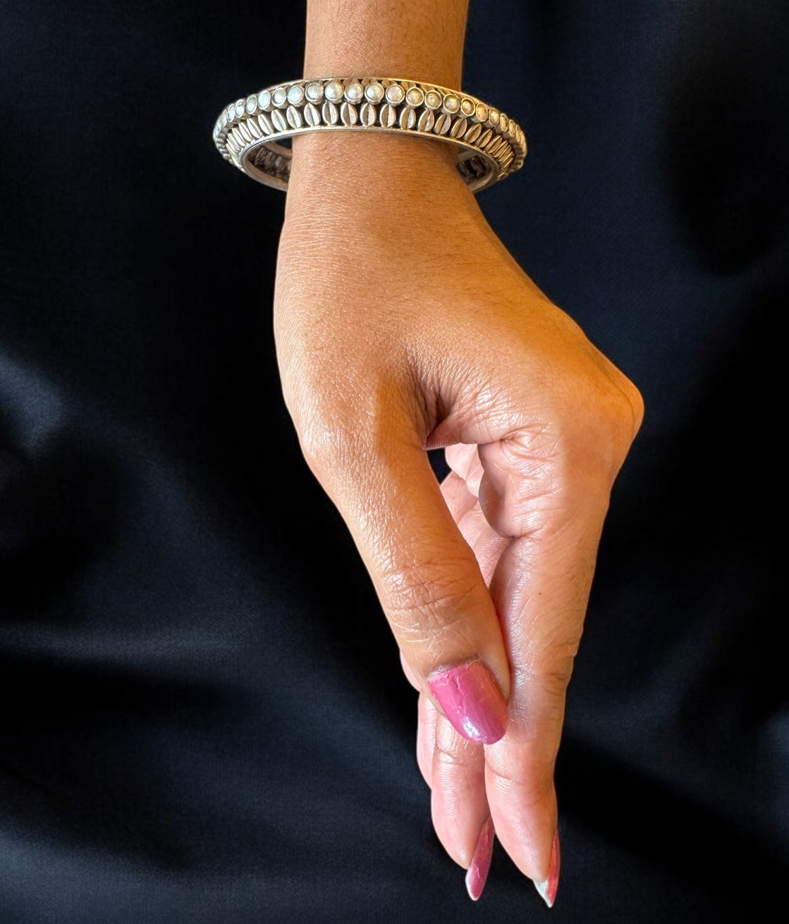 The Moti Tode Silver Pearl Bangle- Single (Oxidised-Size/2.2/ 2.4/2.6/2.8)
