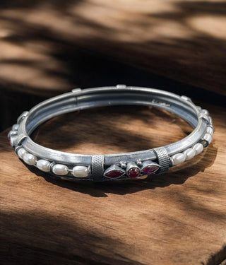 The Pratham Silver Pearl Bangle -Single (Size /2.2/2.4/2.6/2.8)