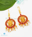 A pretty pair of dainty handcrafted earrings , in Sterling Silver (92.5%) studded with kempu stones with a Ganesha figure in the center. If you like designs that are unique, this piece is for you.