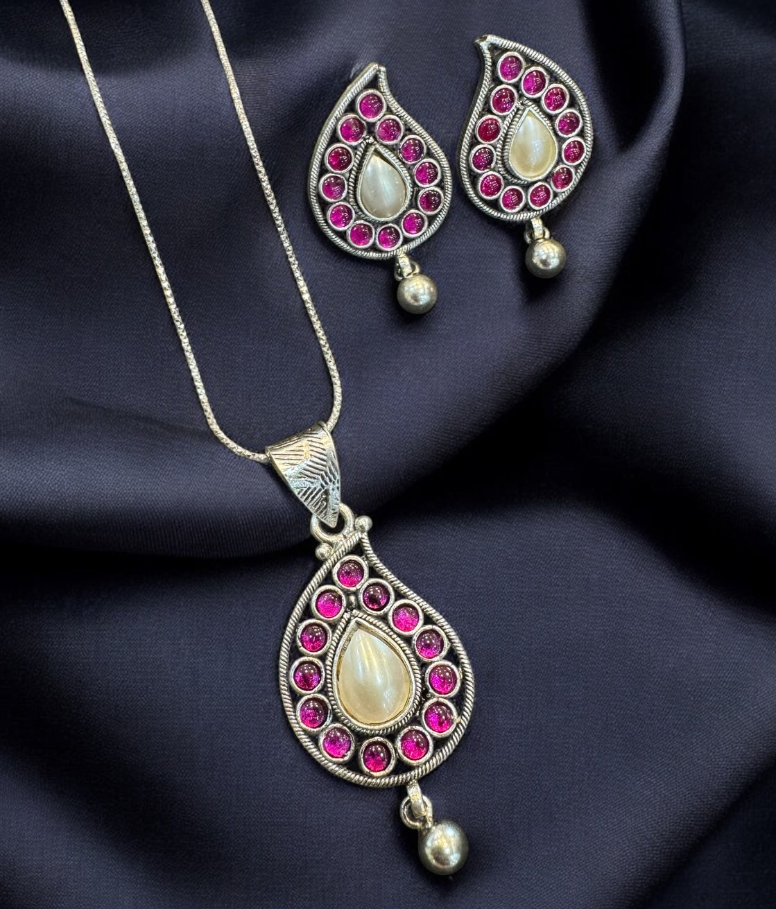 The Maavu Silver Pearl/Kemp Mango Pendant & Earrings