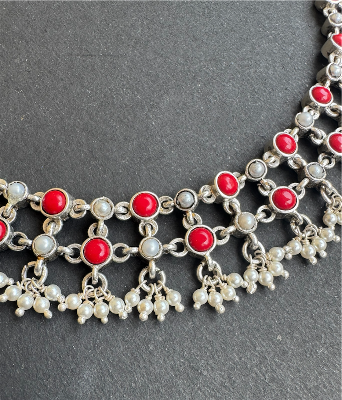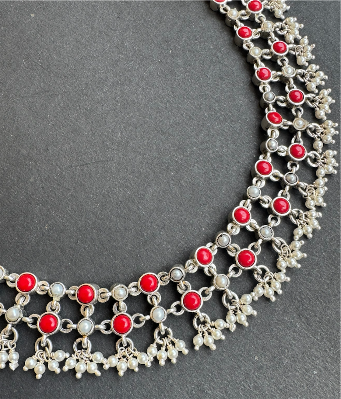 The Sayami Silver Coral Mesh Necklace(Oxidised)