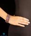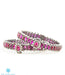 Outshine everyone with this gorgeous bracelet.Beautiful oval-shaped kempu stones are fringed with tiny white zircons in Sterling Silver (92.5%) to create this exclusive piece. This seamlessly handcrafted bangle can be opened to gently fit your hand. You could choose to buy it single or in a pair. The price listed is for a single bangle.