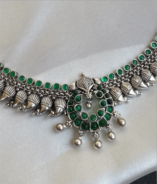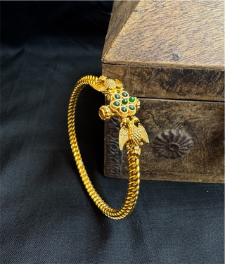 The Virat Silver Gandaberunda Golusu Bangle-Single (Size /2.2/2.4/2.6/2.8) (Green)