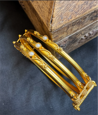"Beautifully crafted. The white stones give these bangles a twinkle . Super happy with my purchase."– Nithya P.