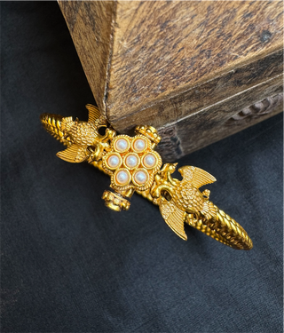 The Virat Silver Gandaberunda Golusu Bangle-Single (Size /2.2/2.4/2.6/2.8) (Pearl)