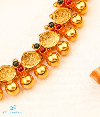 The Pratha Antique Silver Lakshmi Kasumala Coin Necklace/Waistbelt - Red