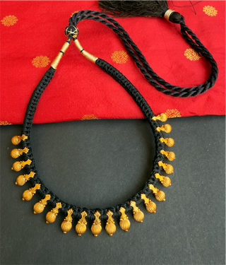 The Narayani Silver Lakshmi Thread Necklace (Black)