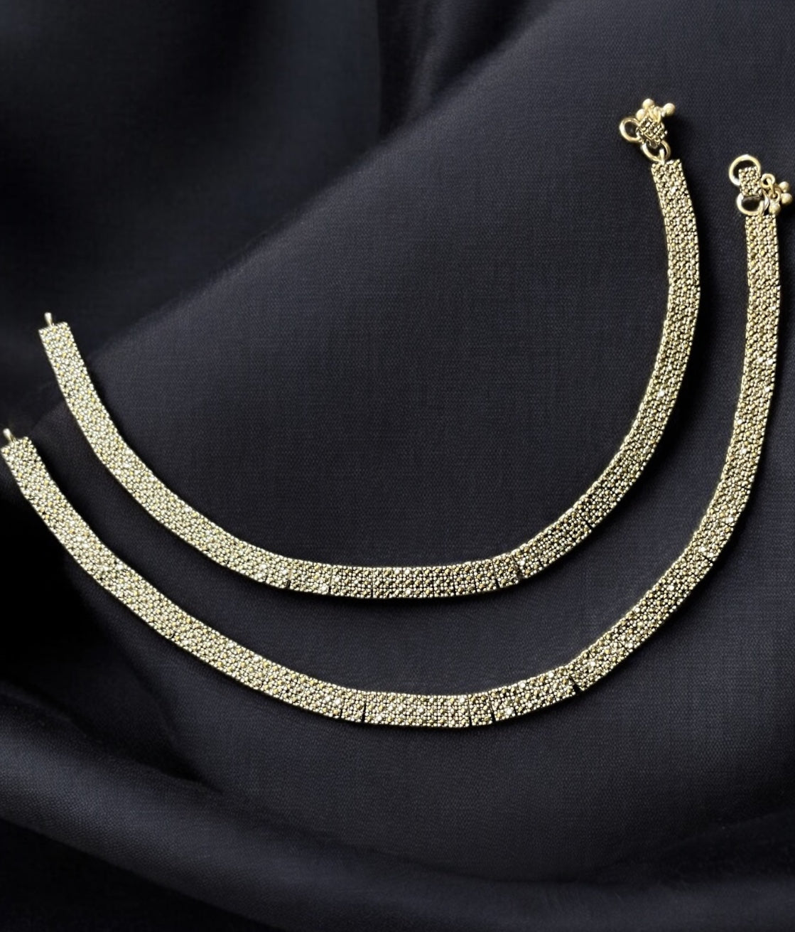 Elevate your style with these exquisite Sterling Silver (92.5%) anklets, featuring a stunning, intricate design that is perfect for any occasion. Adorned with high-quality Swarovski Swiss Marcasite gemstones, these anklets shimmer and sparkle, capturing the light beautifully with every step you take. The combination of the premium silver and the dazzling marcasite stones creates a timeless piece, ideal for bridal wear or adding a touch of luxury to your everyday look. Expertly crafted for elegance and sophistication, these anklets are a must-have accessory that will effortlessly elevate your collection.