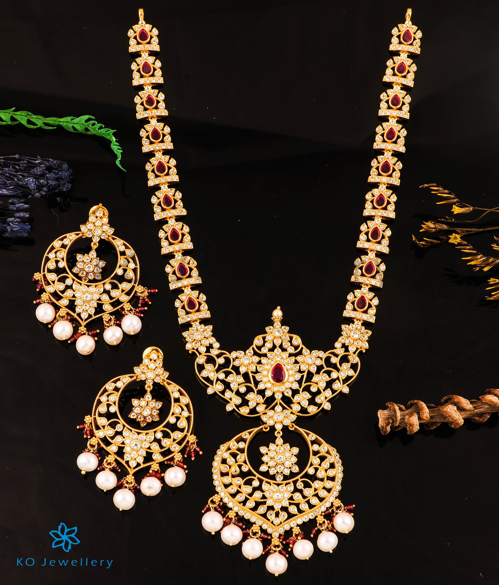 Gemstones used: AAA+ Quality Cubic Zirconia , kempu stone (also known as spinel or Zircon), Pearl.