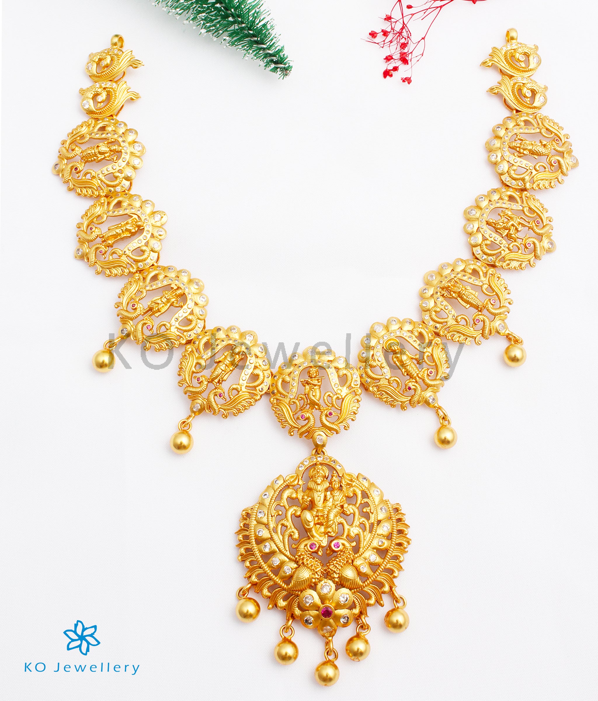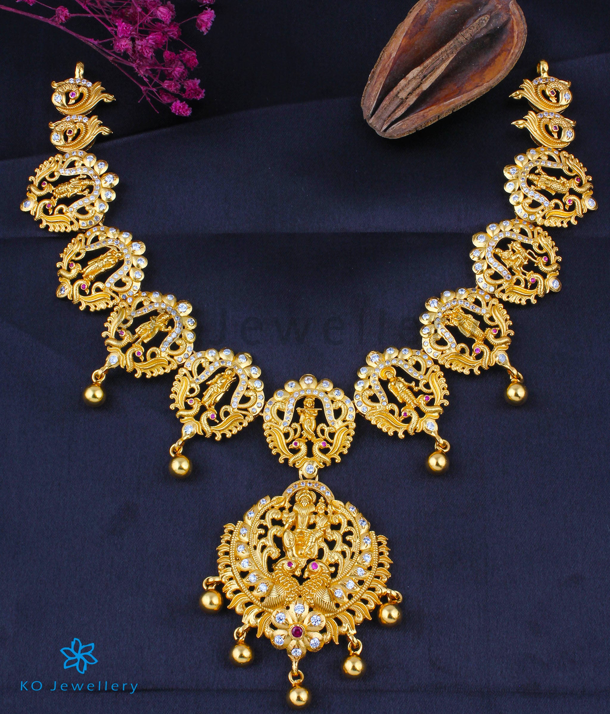 Celebrate divinity and timeless tradition with this stunning Dashavatara necklace, a true tribute to the ten sacred incarnations of Lord Vishnu, the protector and preserver of the universe. According to Hindu belief, Vishnu descends in various forms (avatars) to restore balance and uphold dharma — and this necklace brings that epic narrative to life through masterful craftsmanship.