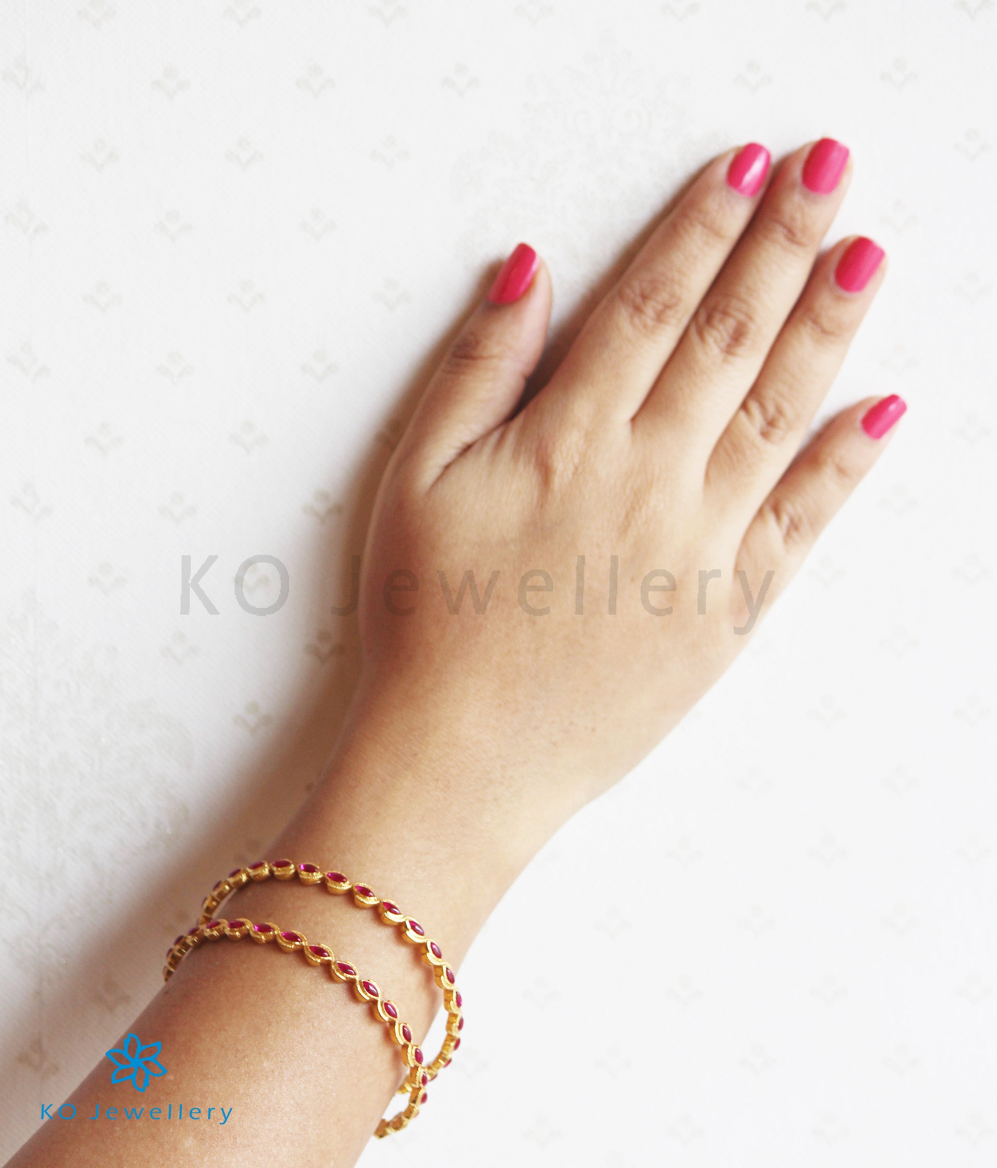 The Eka Silver Kempu Bangle (Red/Size/2.2/2.4/2.6/2.8)