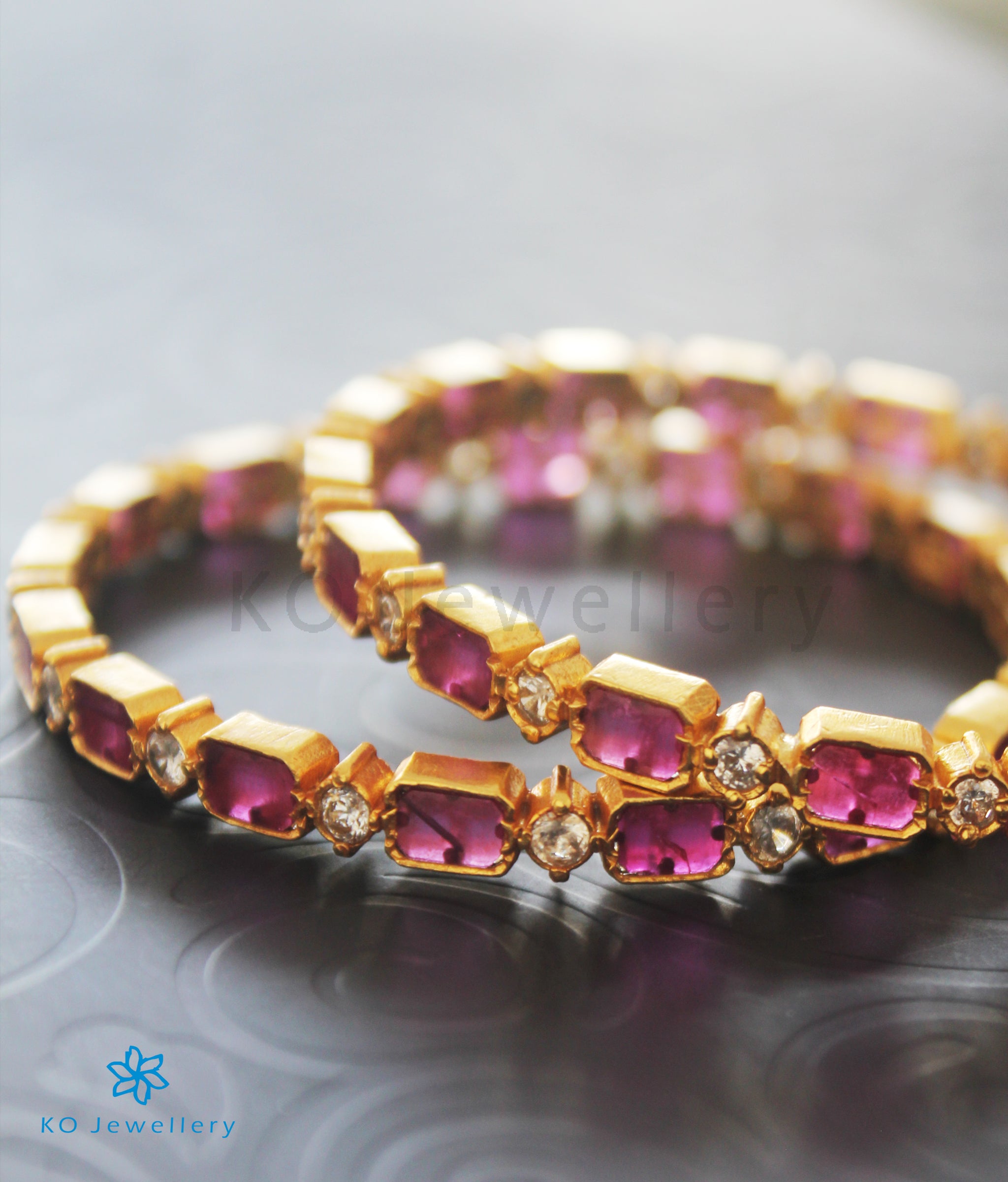 Here’s a lovely, delicate bangle that is extremely gorgeous and sophisticated with a unique design. Handcrafted from Sterling Silver (92.5%) and decorated with kempu stones and AAA+ Quality Cubic Zircon that gives it a sparkling shine, wear as a pair to instantly brighten up your ethnic attire. The price listed is for one bangle.