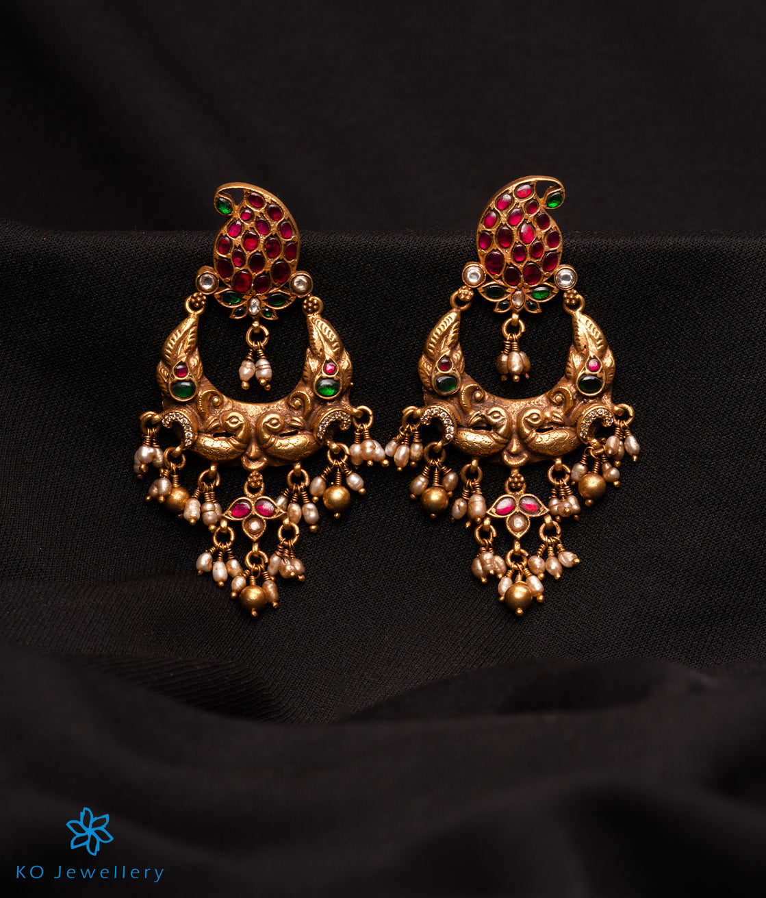 The Peshkash Silver Jadau Peacock Chand Bali Earrings