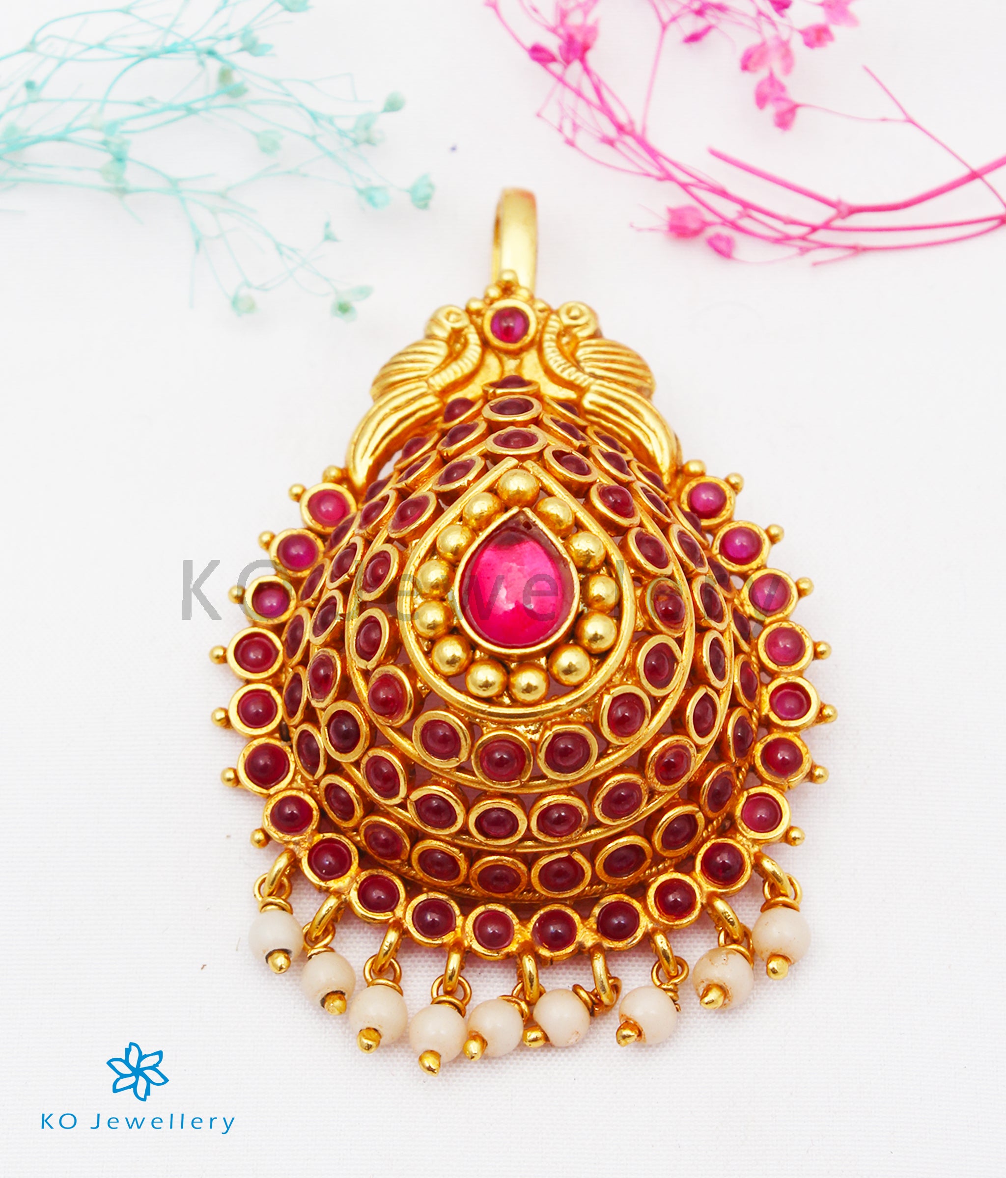 Gemstones used: kempu stone (also known as spinel or Zircon), Pearl.