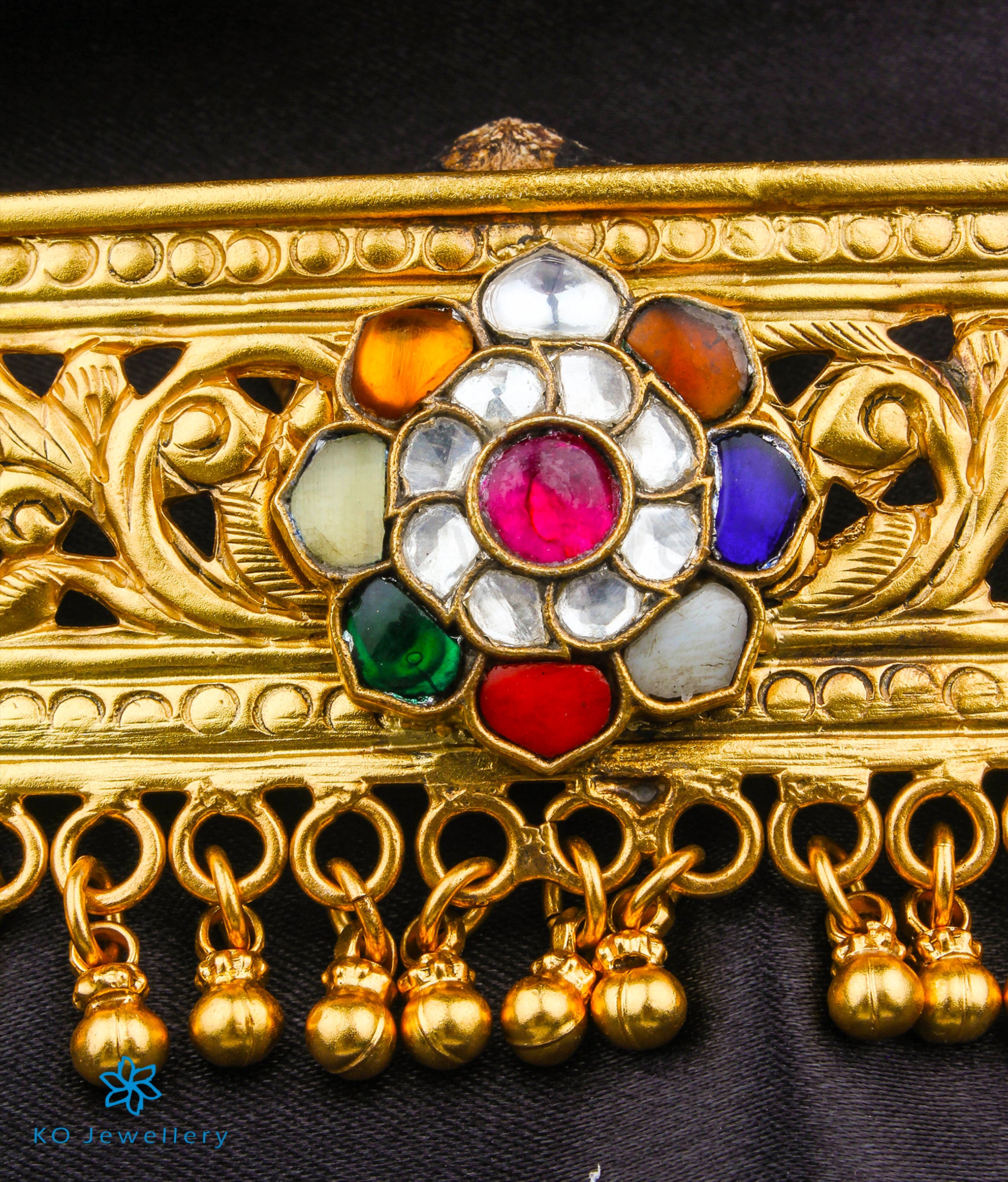This gold-dipped ethnic handcrafted sterling silver (92.5%) choker necklace with a gorgeous handcrafted design and multicolour polki stones exudes an antique charm that is hard to resist ...
