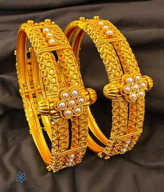 The Aaradhya Silver Pearl Filigree Bangle-Single (Size 2.2/2.4/2.6/2.8)