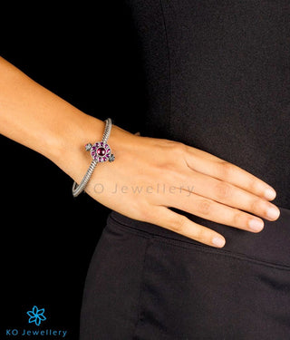The Aaratrika Silver Kempu Openable Bracelet-Single (Red/Green/Size 2.2/2.4/2.6/2.8)