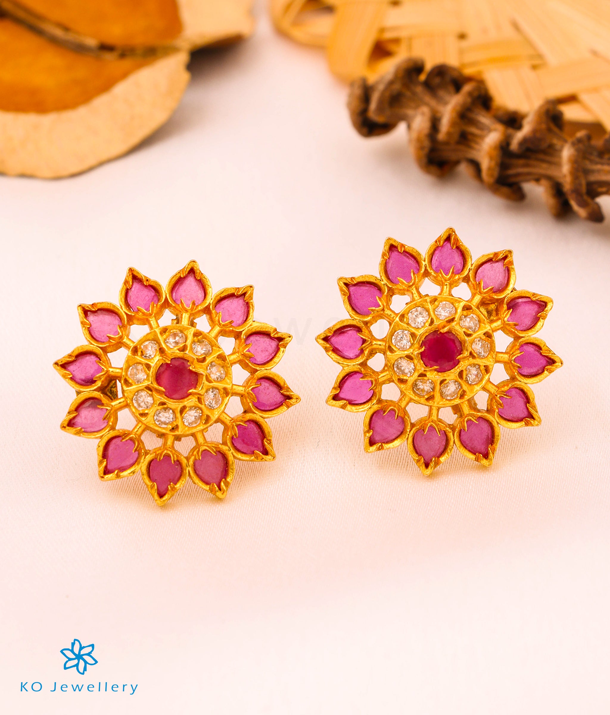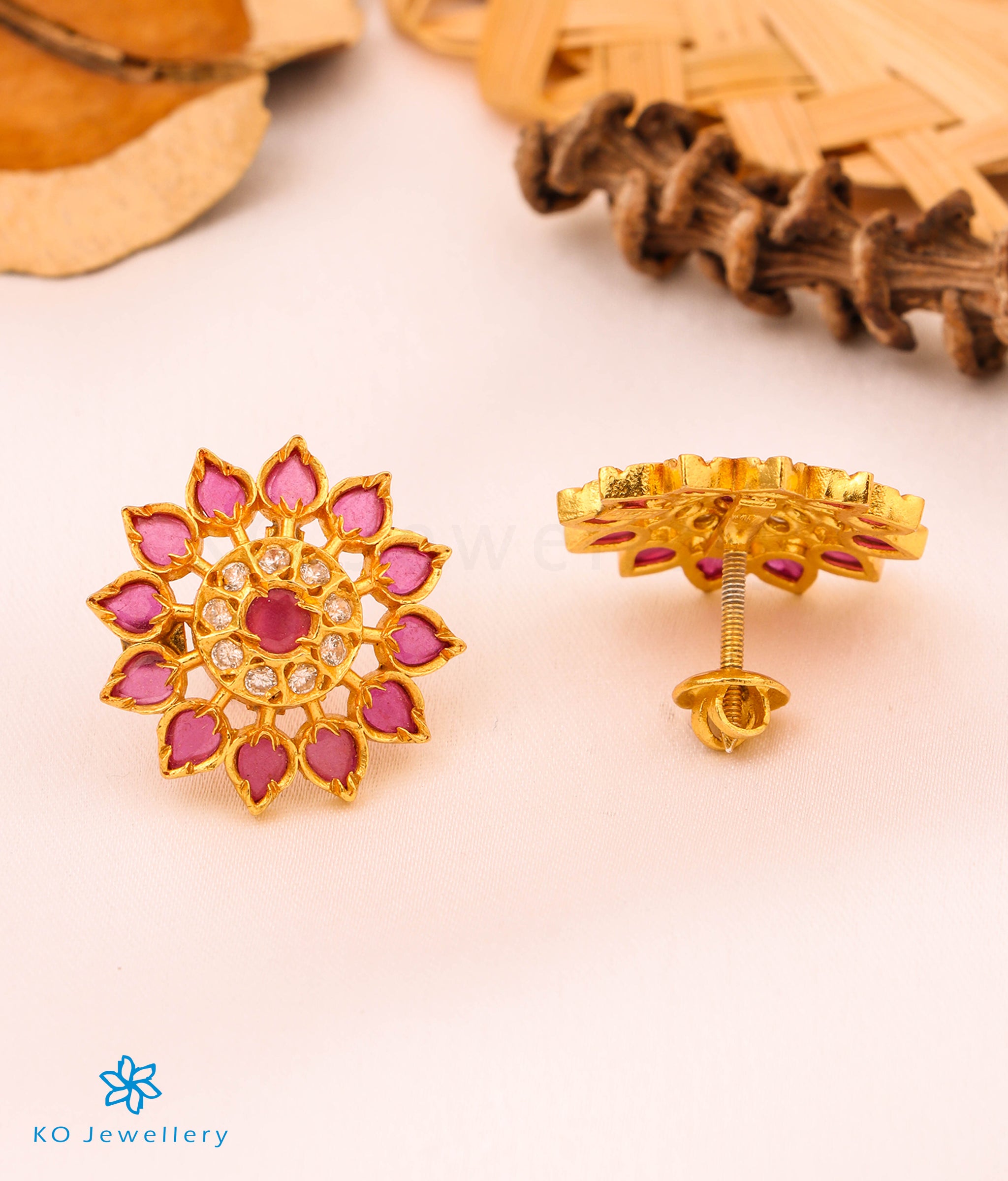 Stunning and gorgeous in design, this is an impeccably handcrafted pair of kempu earstuds in Sterling Silver (92.5%) which has been gold-dipped.