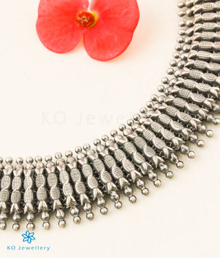 The Rudrani Lakshmi Silver Peacock Oddiyanam (Oxidised/Waist belt with Tassle)