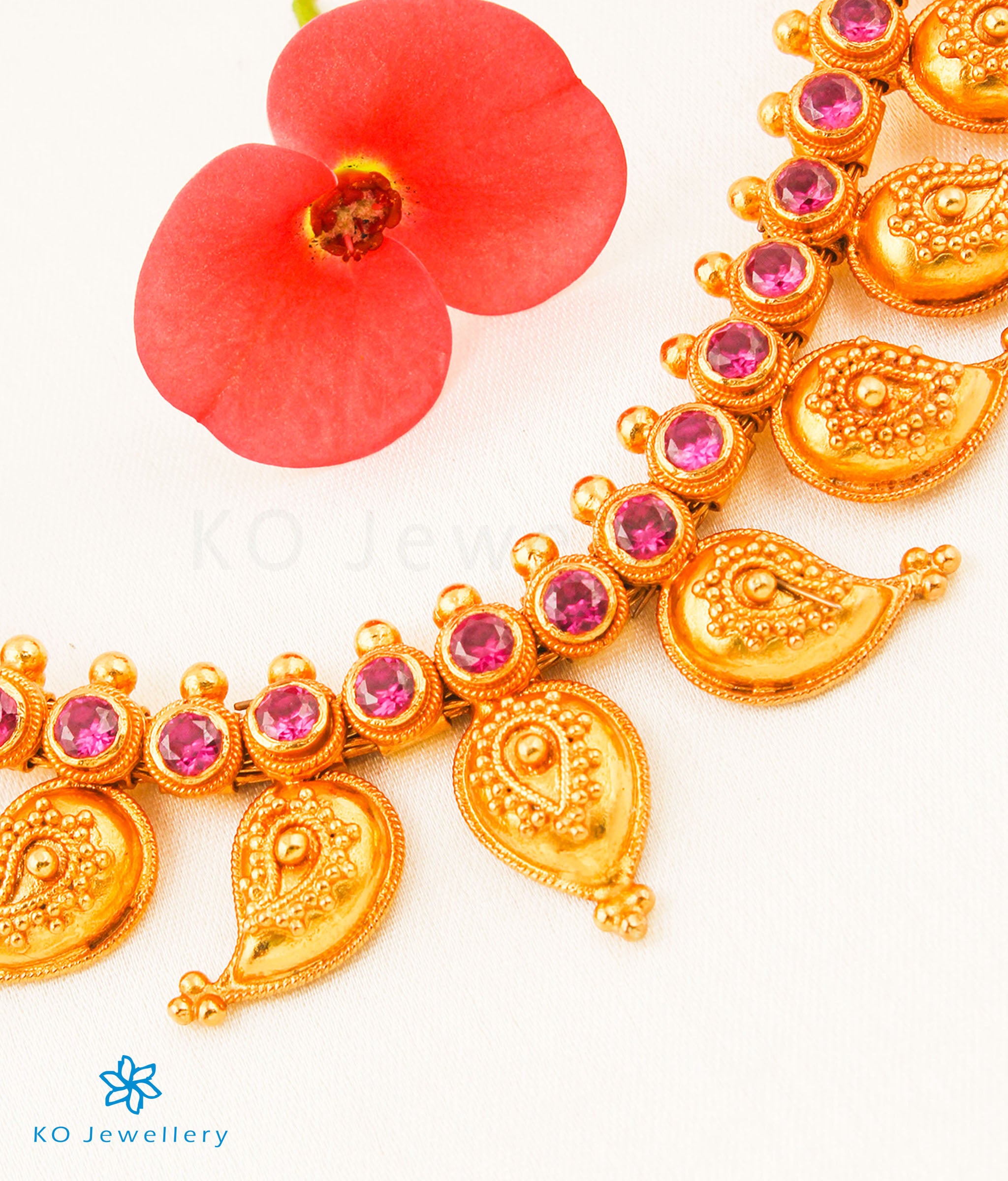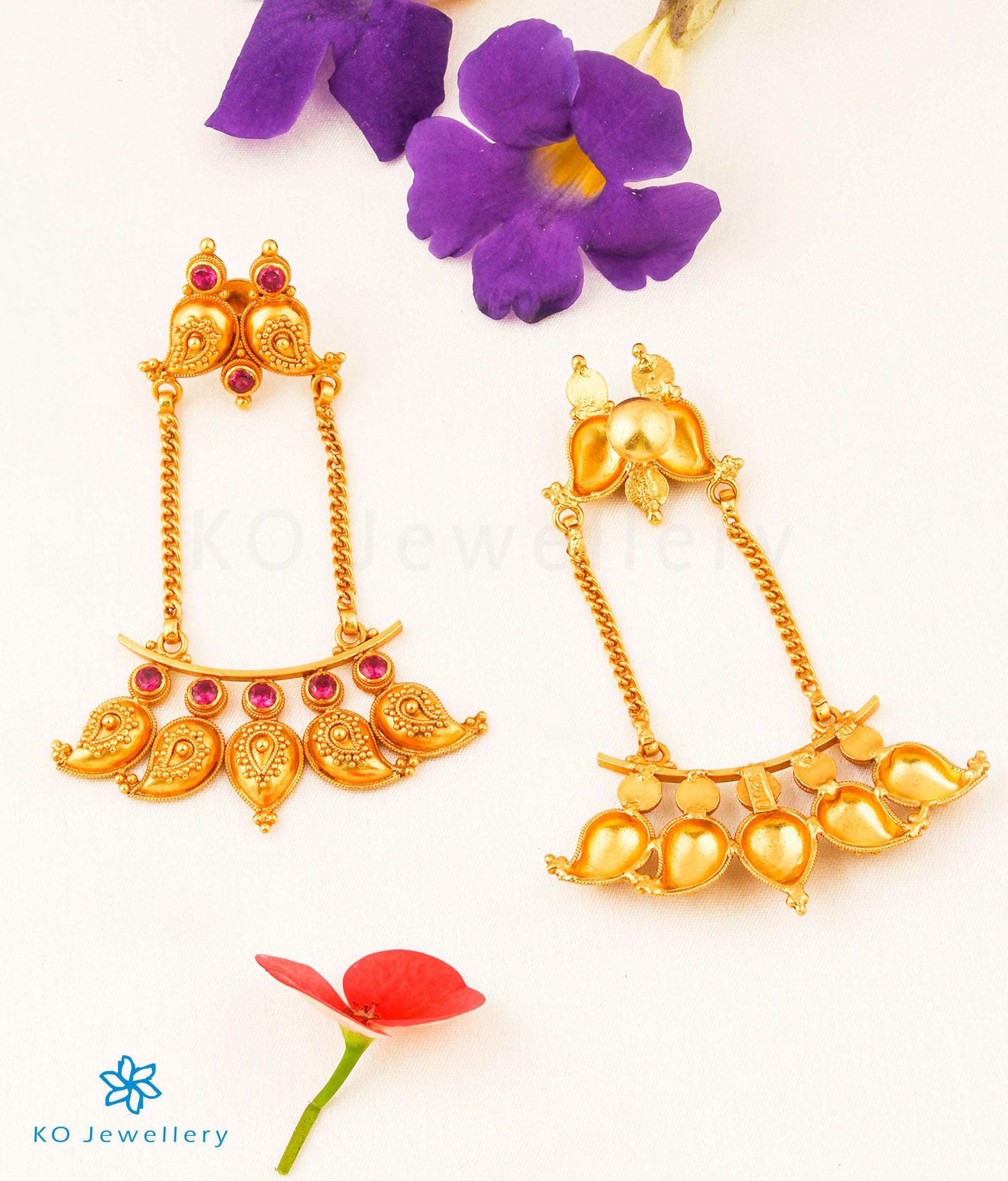 The Damayanti Silver Paisley Necklace (Long) - Buy Real Temple Jewellery Online - KO Jewellery