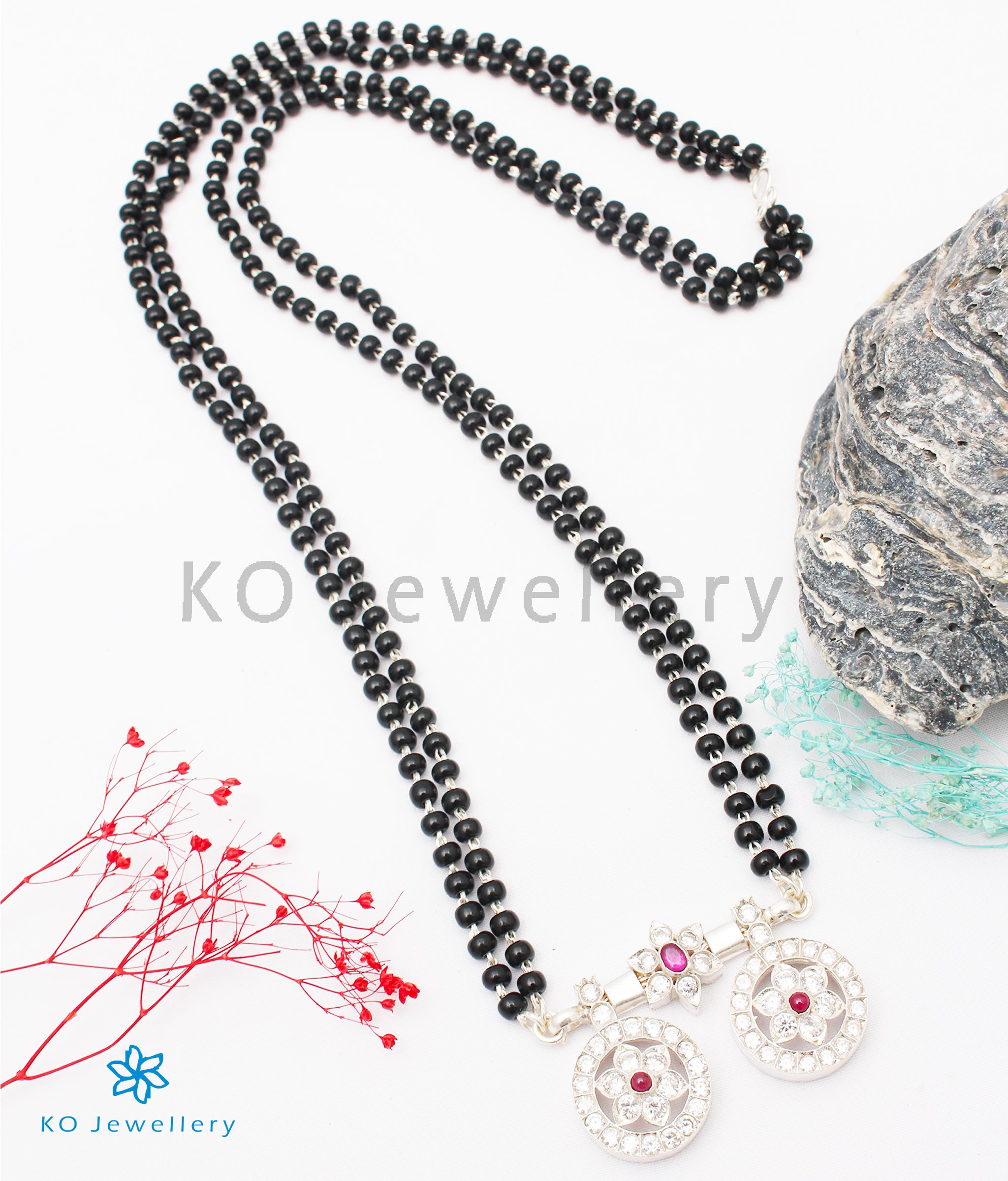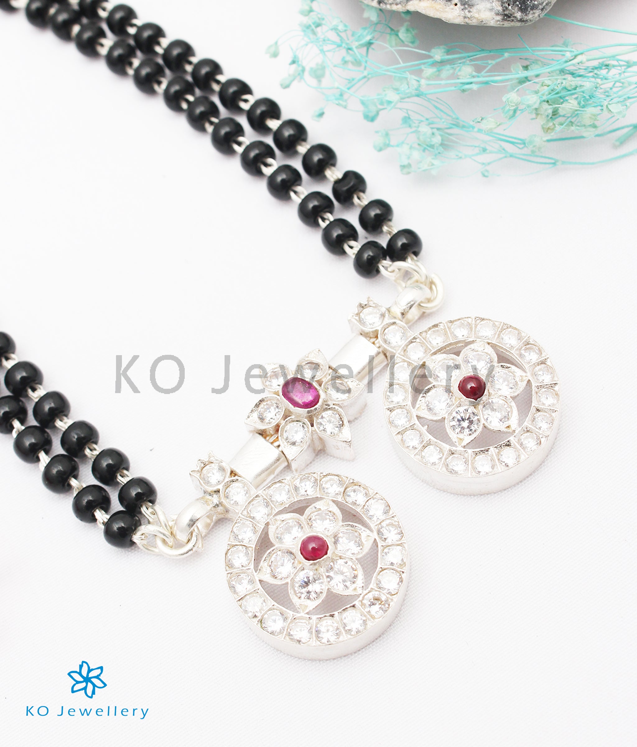 The Saptapadi Silver Mangalsutra Necklace (Red/Bright Silver)