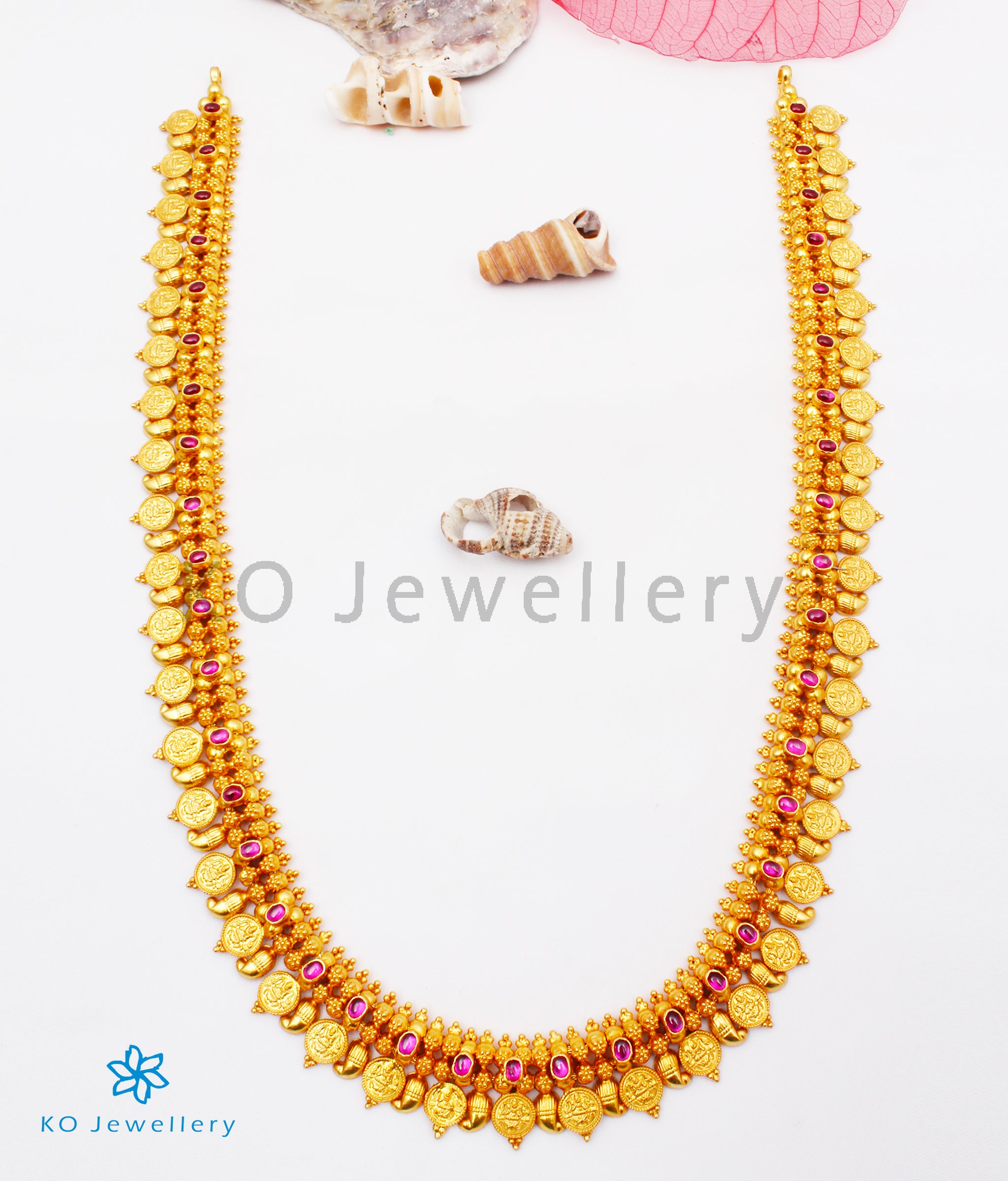 The Kasu mala is an iconic design, that is a favourite for all south indian brides. And wearing two neckalaces of the same design, one which is shorter and the other that is longer is also a tradition. So here you can buy a set of these one long and one short.