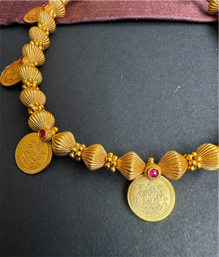 The Saumika Silver Lakshmi Kasumala Coin Necklace & Earrings (Pearl)