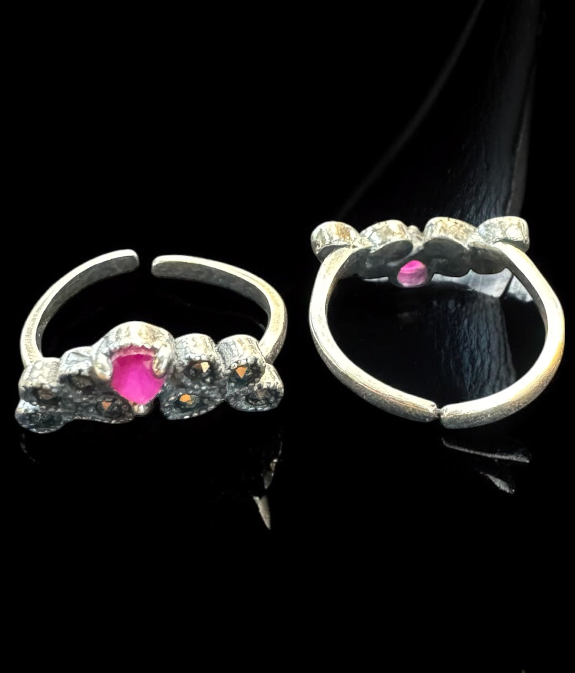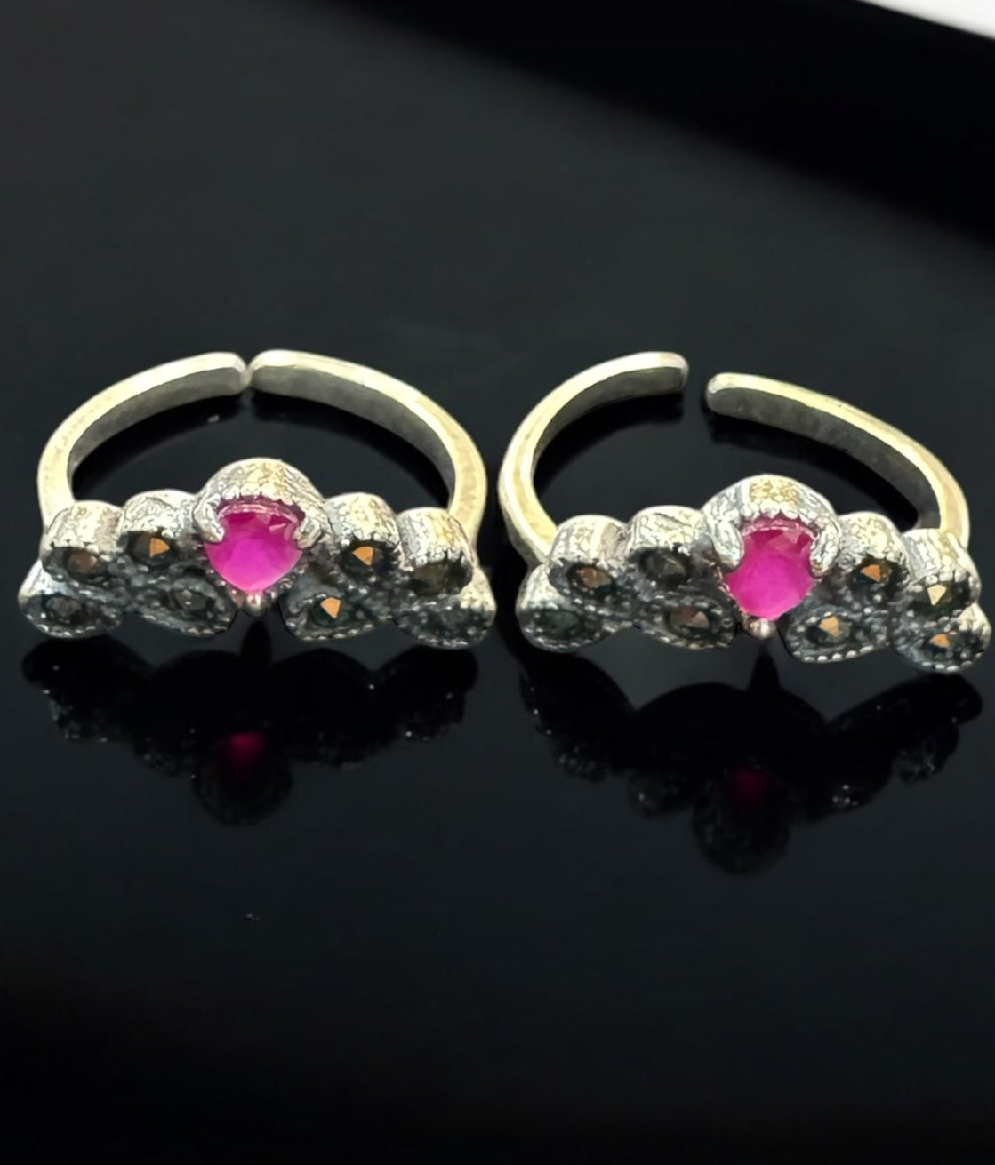 The Tiara Silver Marcasite Toe-Rings (Red)