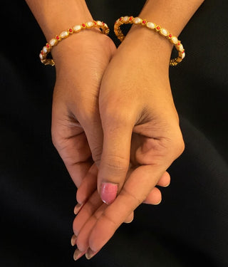 The Aadya Silver Pearl Bangle-Single (Size 2.2/2.4/2.6/2.8)