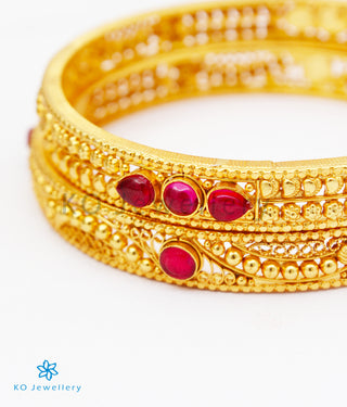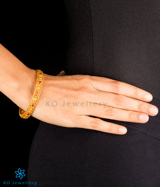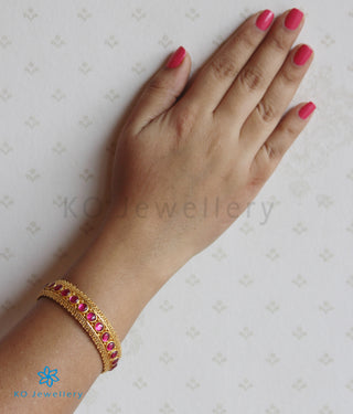 The Aditi Silver Filigree Bangle-Single (Red/Size/2.2/2.4/2.6/2.8)