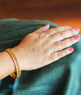 The Manya Silver Filigree Kemp Bangle - Single (Red&Green/Size 2.2/2.4/2.6/2.8)