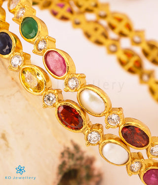 The Lohita Silver Navratna Bangle-Single (Size/2.2/2.4/2.6/2.8)