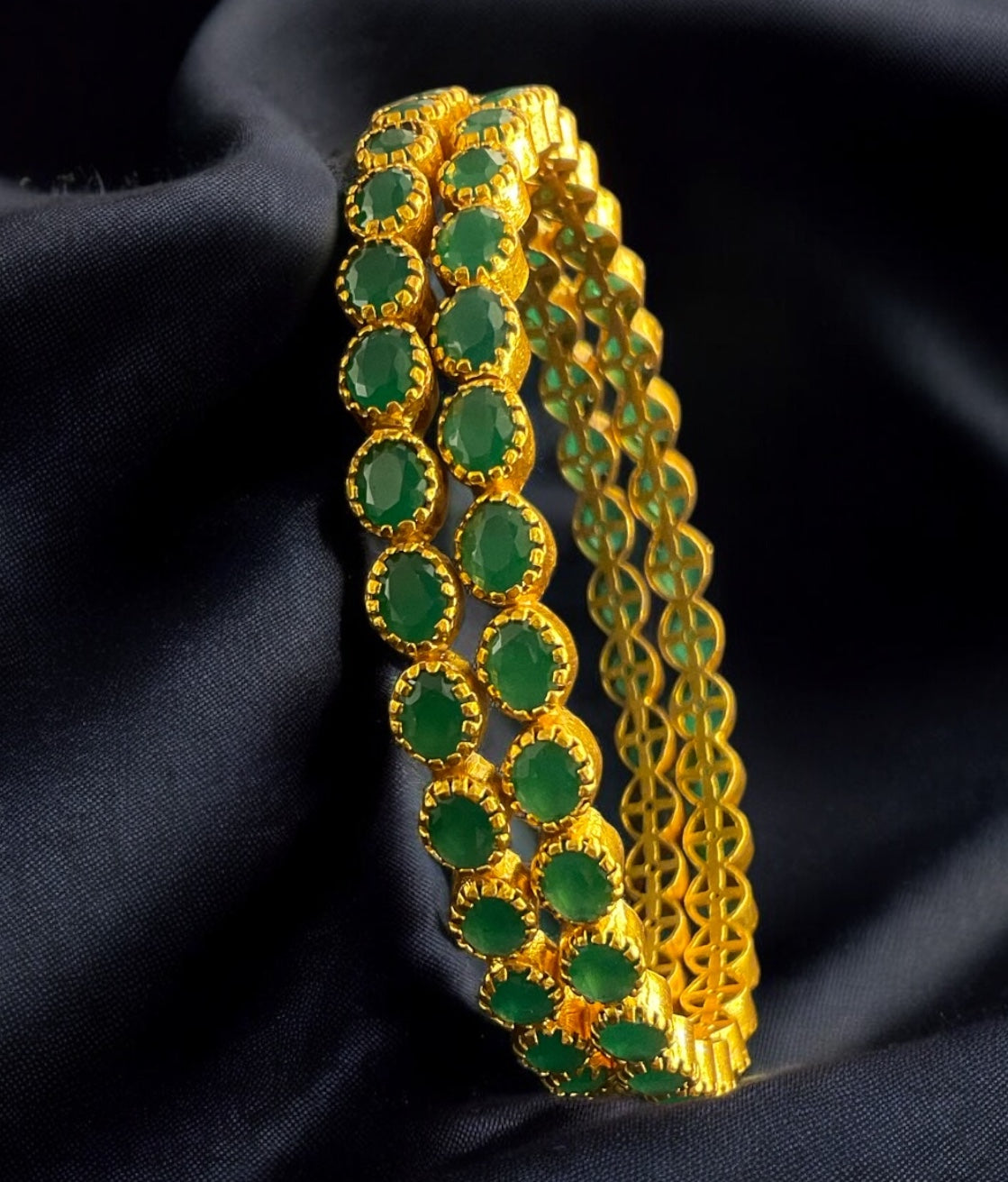 The Ardra Silver Kemp Bangle(Green/Size 2.4/2.6/2.8)