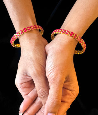 The Parag Silver Red Kemp Filigree Bangle- Single (Size /2.2/2.4/2.6/2.8)