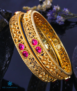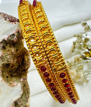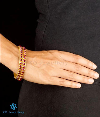 The Nimisha Ornate Silver Kemp Bangle (Red/Size/2.2/2.4/2.6/2.8)